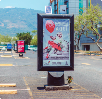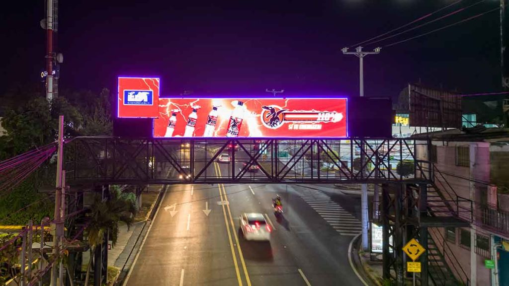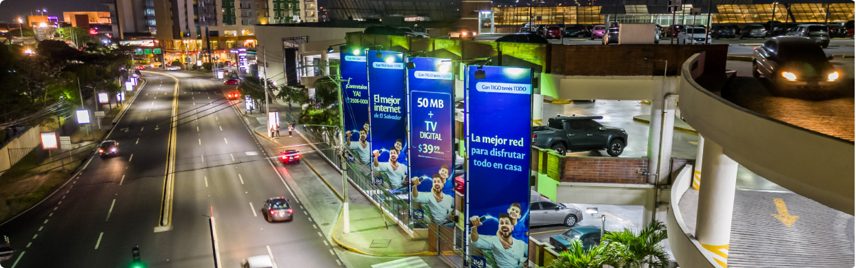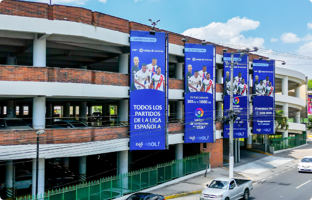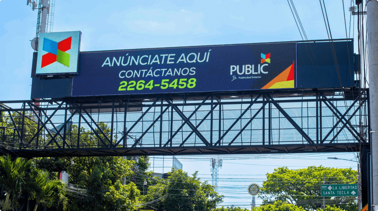 Nos aseguramos que tu marca se luzca. Nuestras pasarelas y vallas fijas y digitales ubicadas en puntos estratégicos e intersecciones puntuales en la zona metropolitana de San Salvador, te aseguran la mayor exposición de marca.